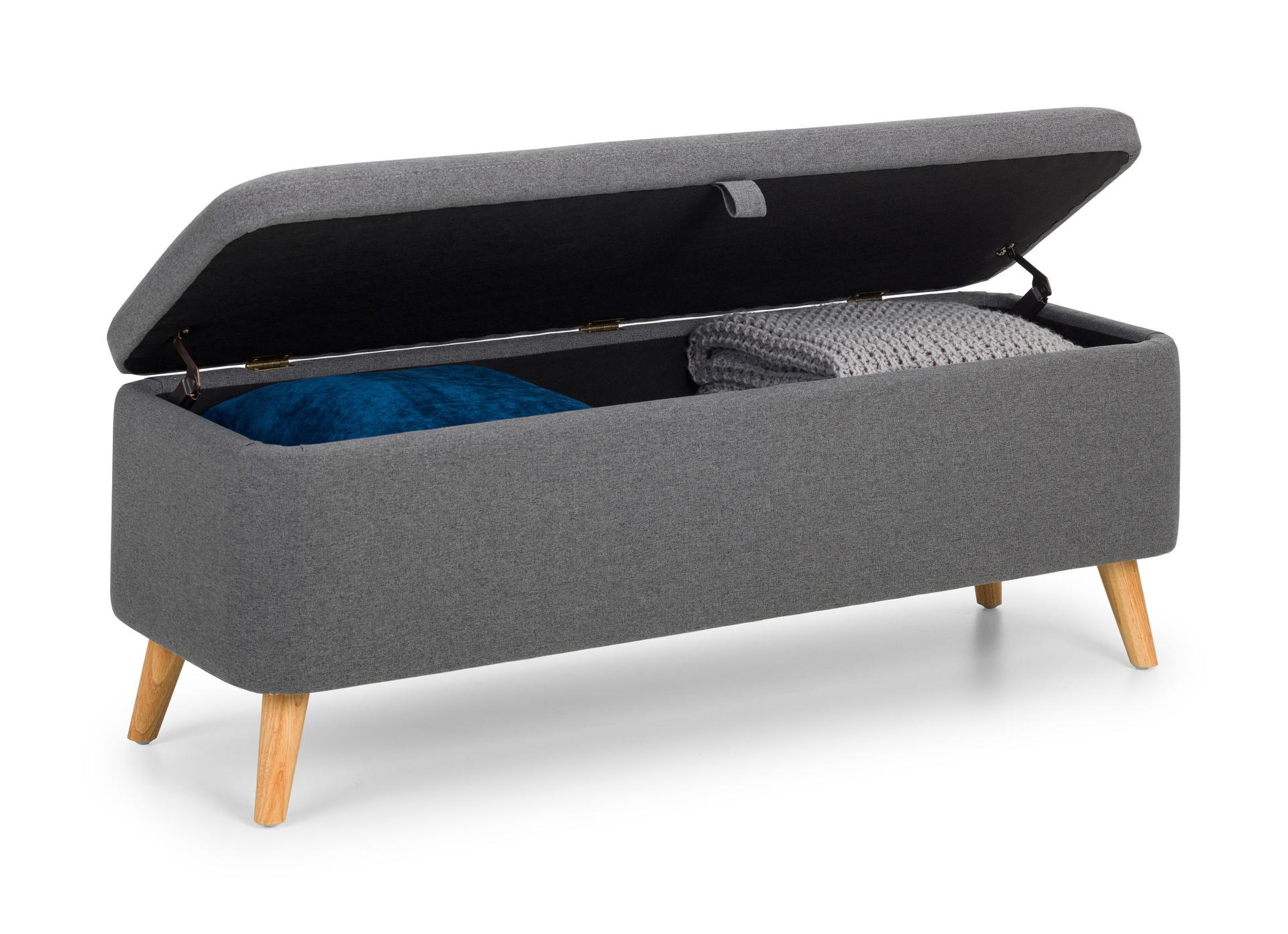 Perfectly proportioned to sit at the end of the Julian Bowen Astrid bed, this contemporary Astrid blanket box is upholstered in a crisp grey linen fabric. This contemporary, Scandinavian design fits perfectly with a wide range of bedroom décor. The perfect storage for your cushions, linens, or duvets with the ease of soft close hinges.